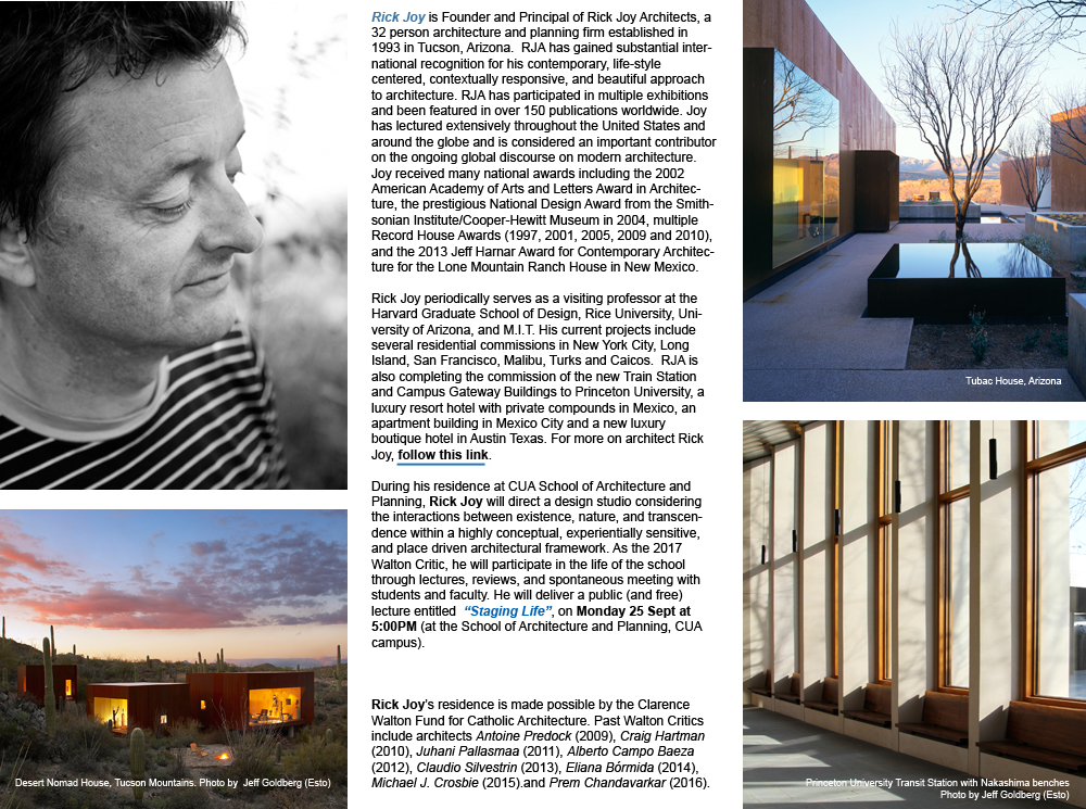 The 2017 Walton Critic and Professor in Residence (September -October). The Catholic University of America — School of Architecture and Planning